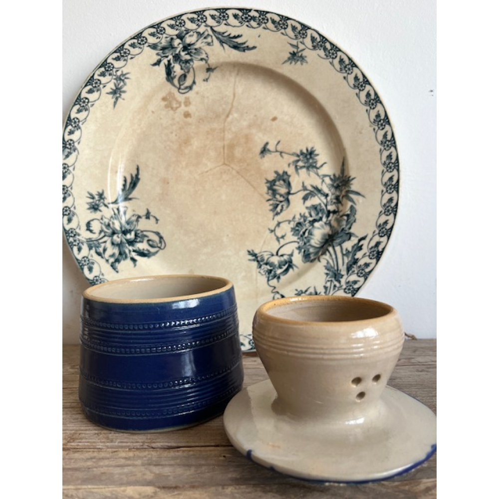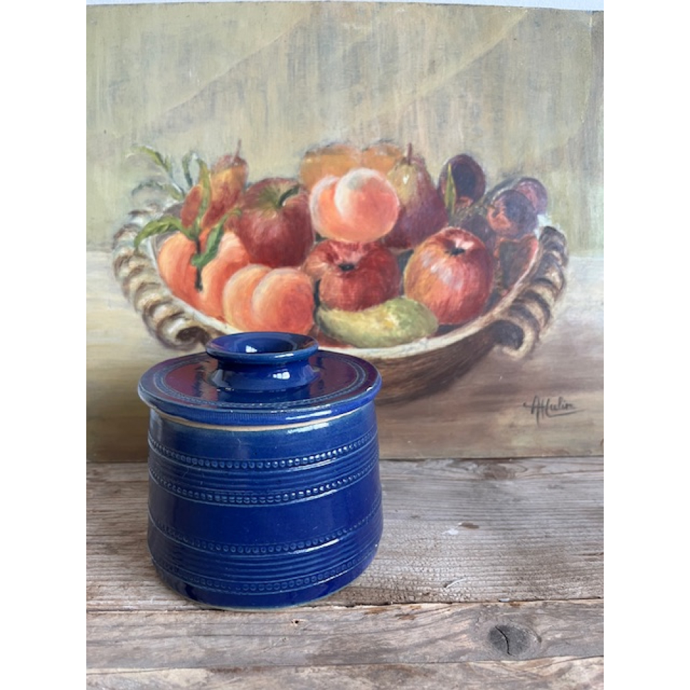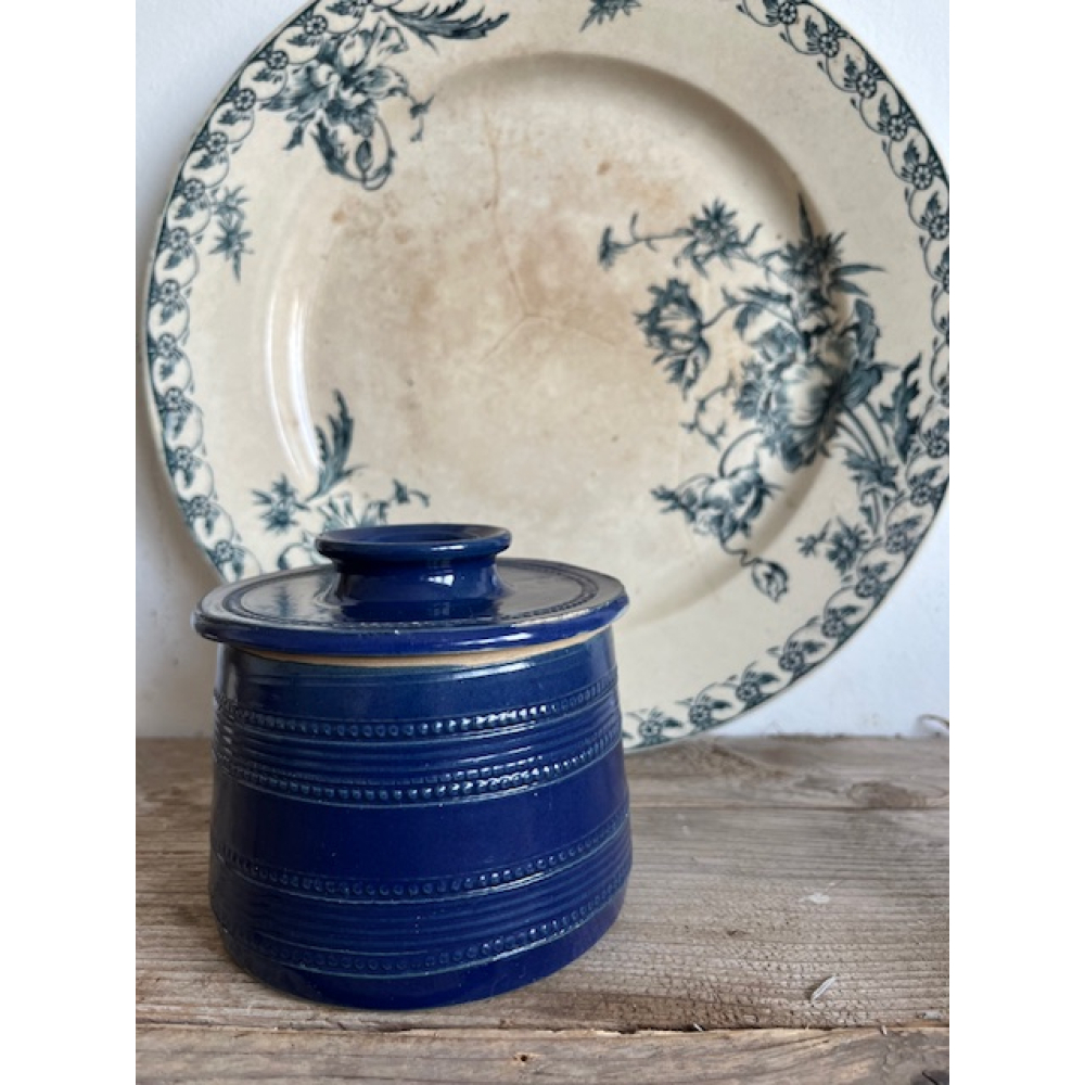 Kobaltblauwe Franse boterklok van keramiek.