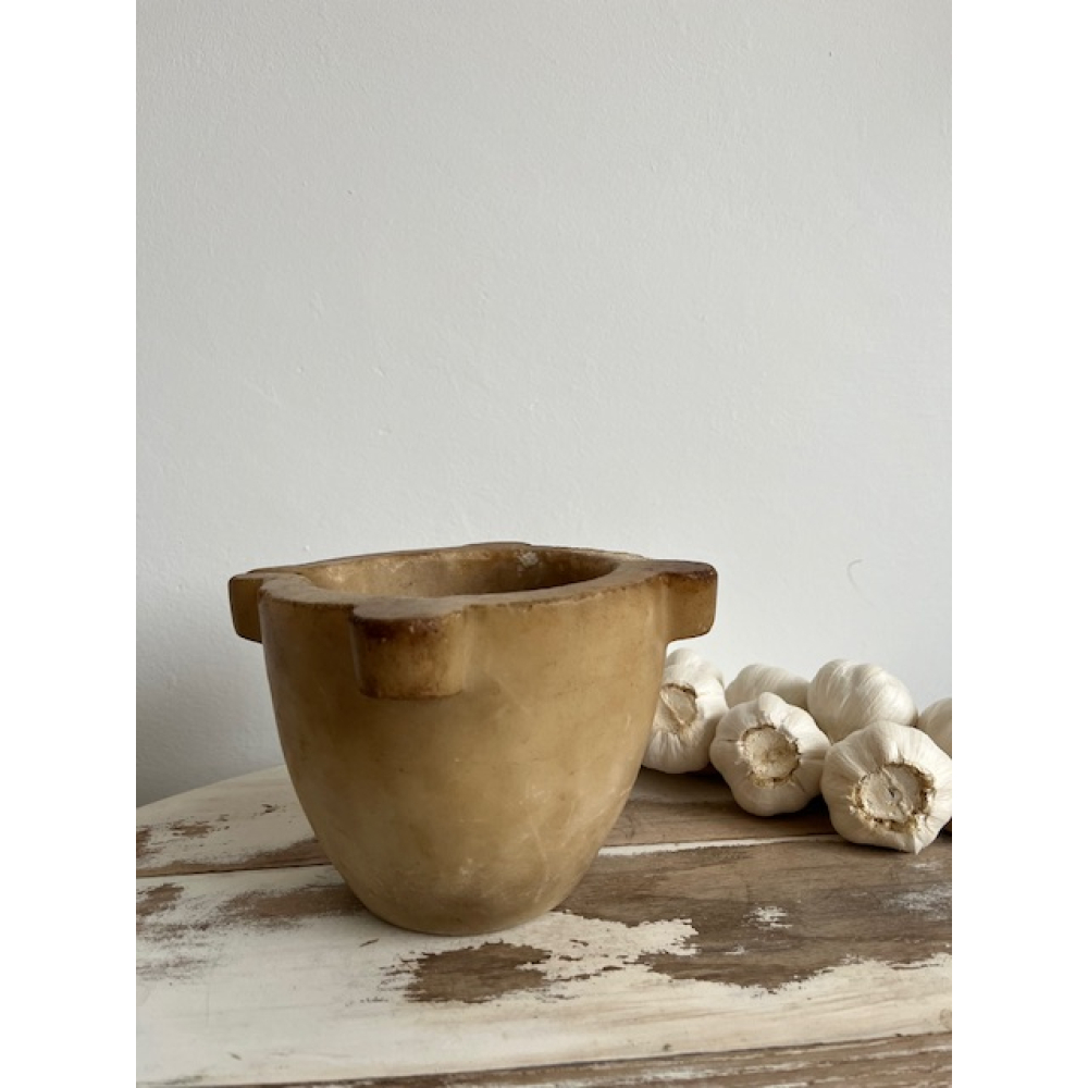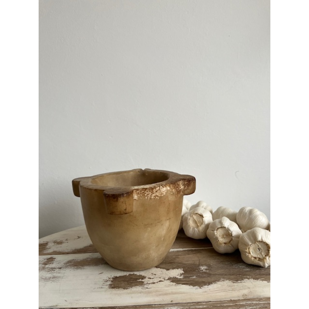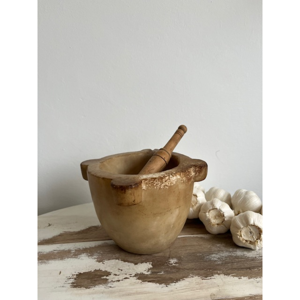 Zeer oude en prachtige Franse vijzel in marmer met stamper.