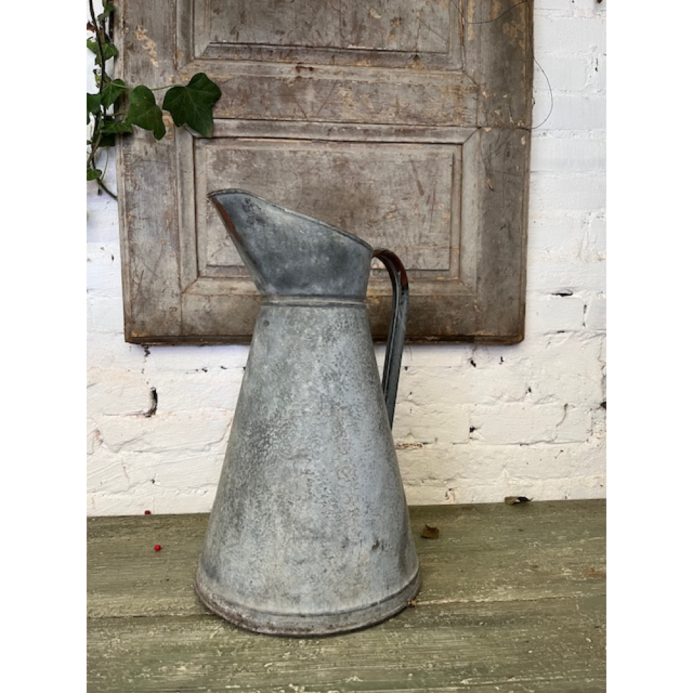 Charmante zinken kan met een stoere, doorleefde uitstraling. Dit tijdloze stuk past perfect in een landelijke, brocante of industriële setting en is mooi als decoratief object of als vaas voor bloemen en takken.